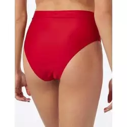 Maillot de bain 2 pièces rouge élégant avec haut triangle réglable et culotte brésilienne à nouettes ajustable sur les côtés. Disponible en tailles 34 à 46.