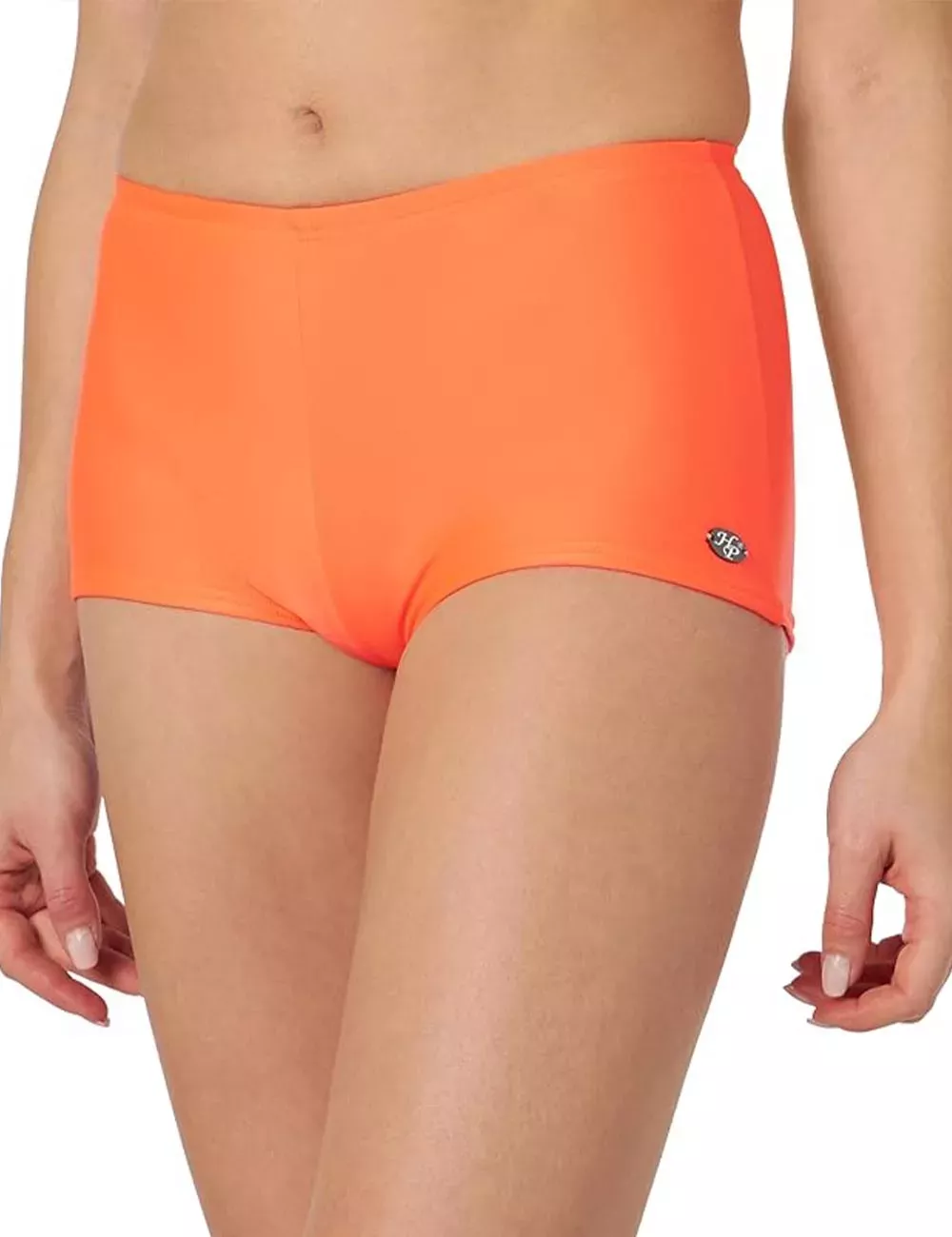 Illuminez votre look de plage avec ce shorty uni orange fluo, le bas de maillot de bain femme du 36 au 46. Éclat et confort à la clé.
