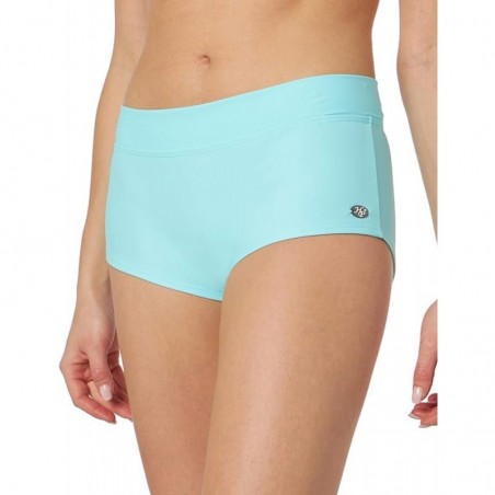 Adoptez le style et le confort avec notre bikini menthe clair deux pièces. Comprend un haut triangle avec liens à nouer et un shorty avec possibilité de revers pour une taille basse. Disponible en tailles 34 à 46.
