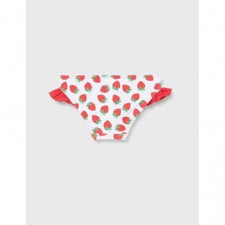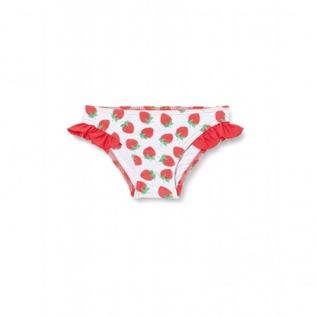 Bas de maillot pour fillette, imprimé fraises avec volants sur les côtés. Disponible du 12 mois au 8 ans.