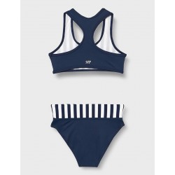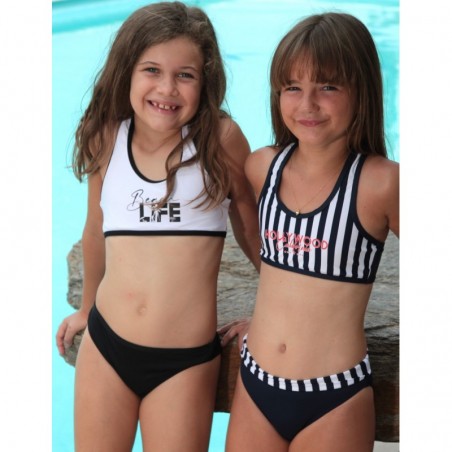 Embarquez pour une aventure nautique avec notre nouvel ensemble de bain pour les jeunes filles. La brassière arbore des rayures bleu marine et blanches avec une touche de rouge pour une allure nautique classique, tandis que la culotte coordonnée présente un design épuré avec un revers rayé. Disponible pour les enfants de 2 à 8 ans, cet ensemble est aussi partie d'une collection mère-fille pour ceux qui aiment assortir leur style avec élégance.