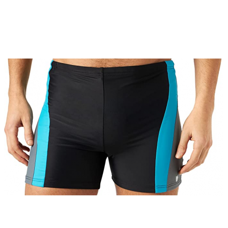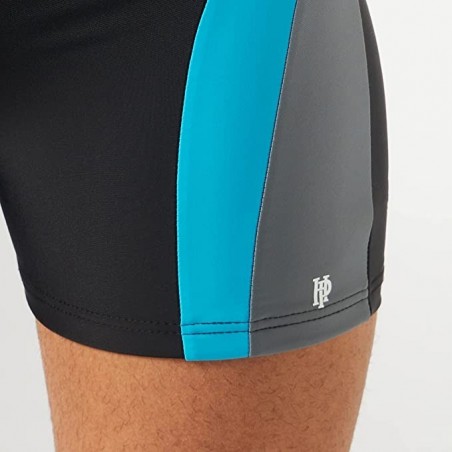Boxer de bain homme long uni tricolor noir/gris/turquoise disponible de la taille T1 à T8
