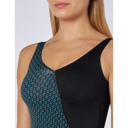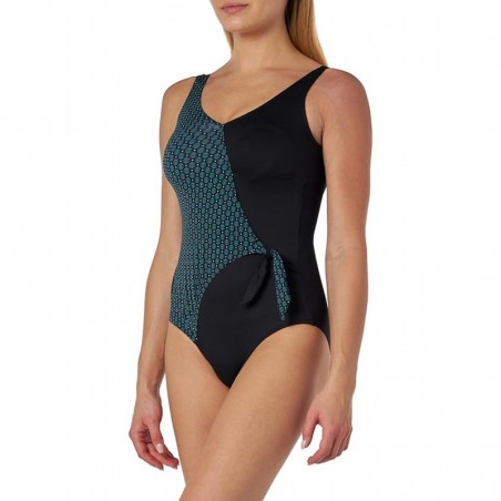 Les bretelles fixes offrent un maintien ferme et confortable et le motif géométrique sur le côté gauche contraste joliment avec l'uni noir sur le côté droit.
