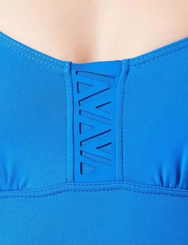 Maillot 1 pièce femme coloris bleu électrique, coupe classique et décolleté discret avec détails graphiques. Bonnet C, tissu gainant. Tailles 38 à 52.