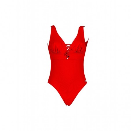 Ce maillot de bain 1 pièce uni rouge sans armatures shapewear élégant et glamour affinera votre silhouette, vous apportera un confort absolu grâce à son bonnet profond et ses liens uni fantaisies.