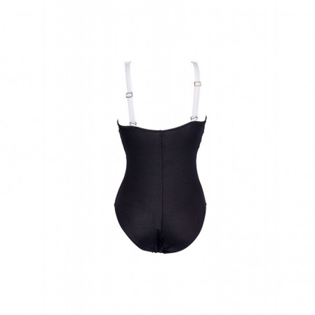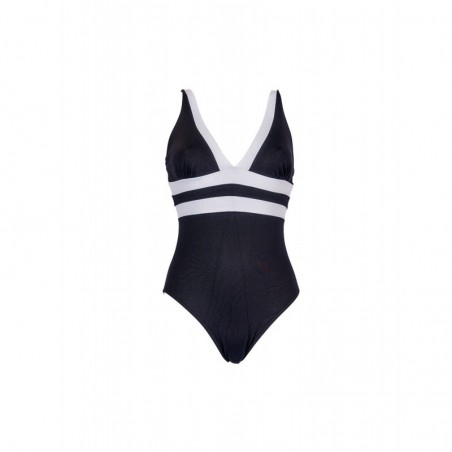 Maillot de bain femme 1 piece N1011 NOIR/BLANC décolleté V uni noir avec bandes contrastées unis blanches de la collection HAUTE PRESSION 2023.